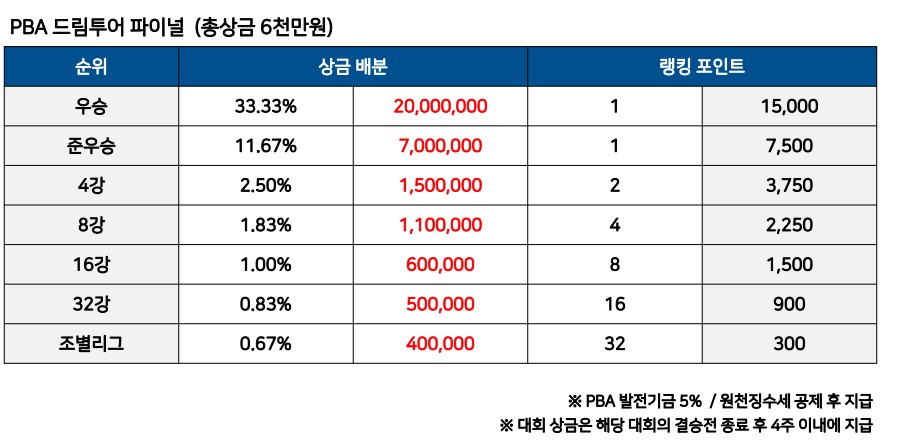 자세한 PBA 드림투어 우승 상금을 확인해보세요.